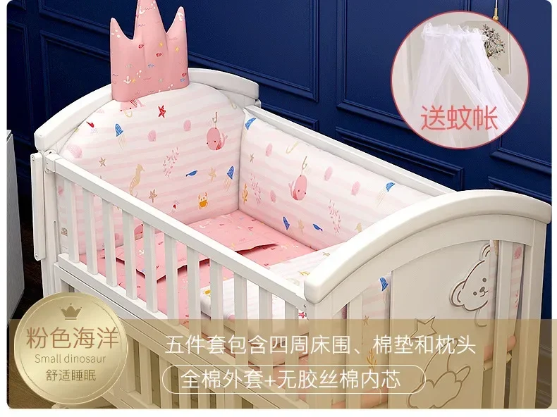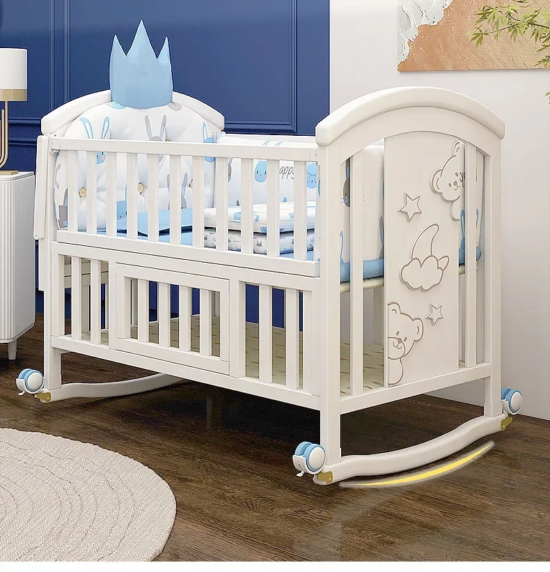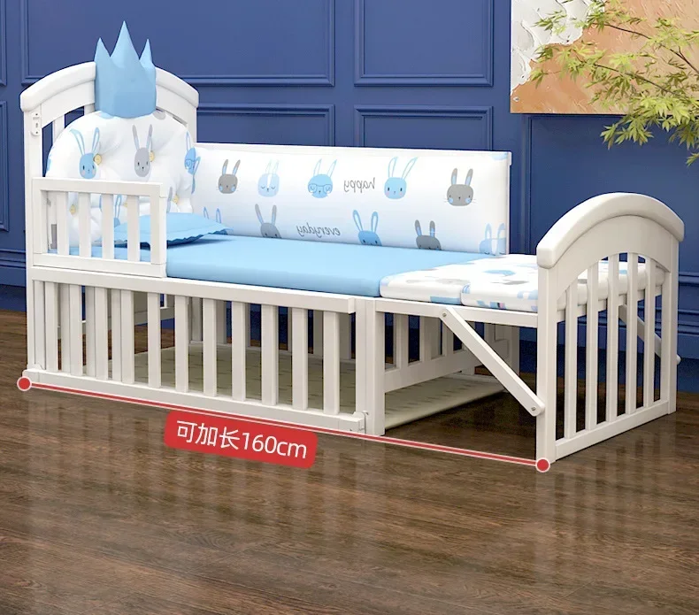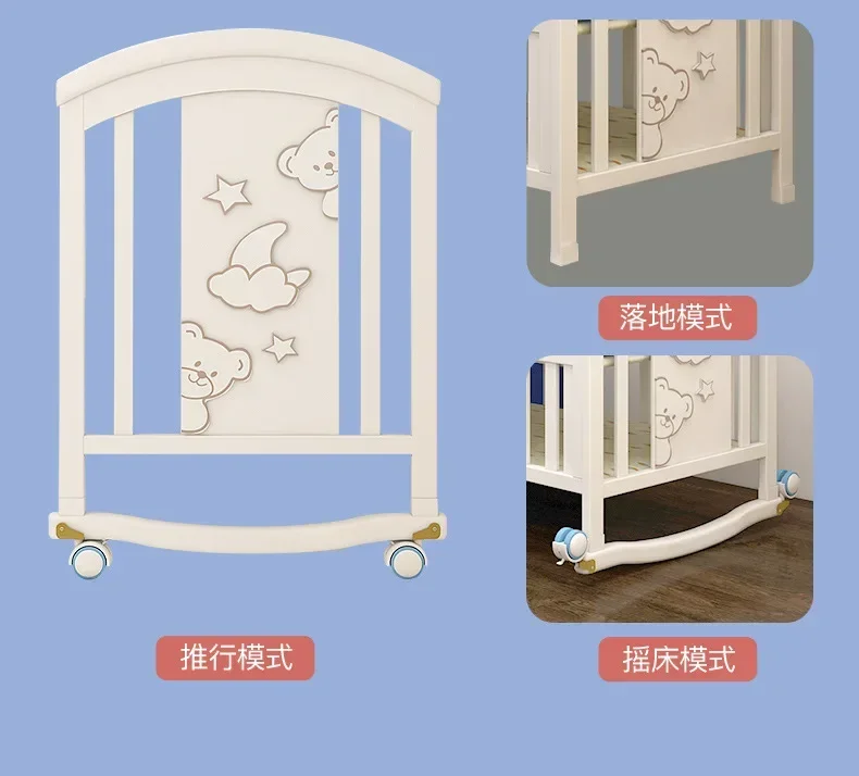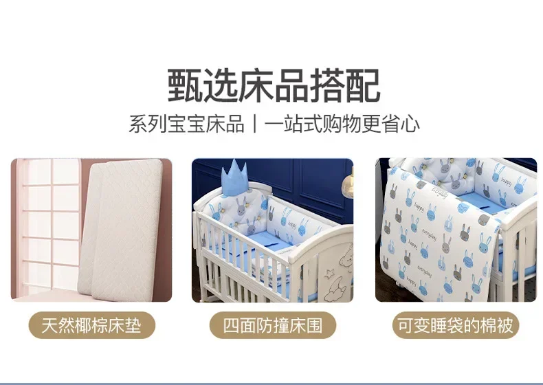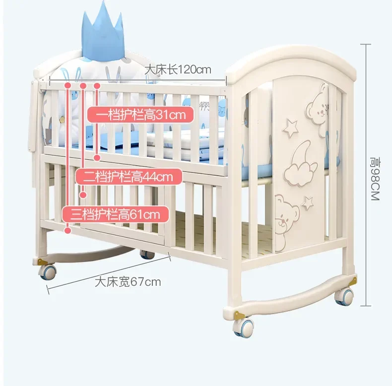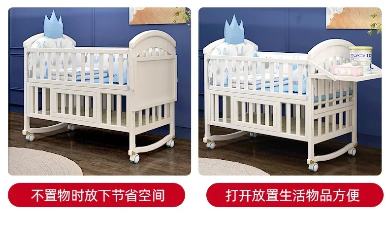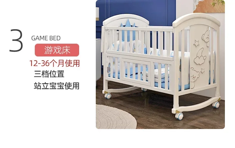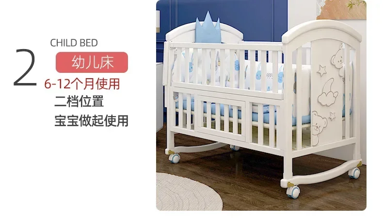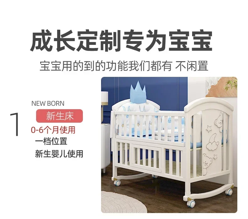 سرير أطفال من الخشب الصلب قابل للإزالة ، مهد متعدد الوظائف لحديثي الولادة ، سرير ملكة بربط للأطفال ، أبيض ، بي بي ، أوربي