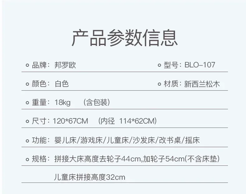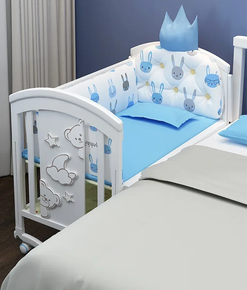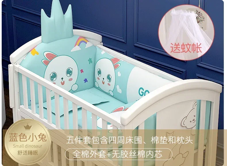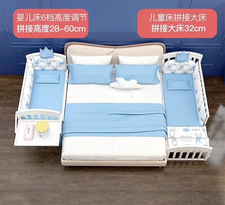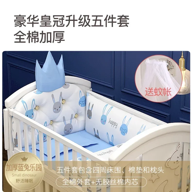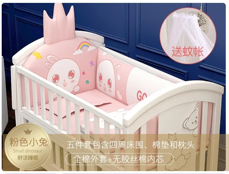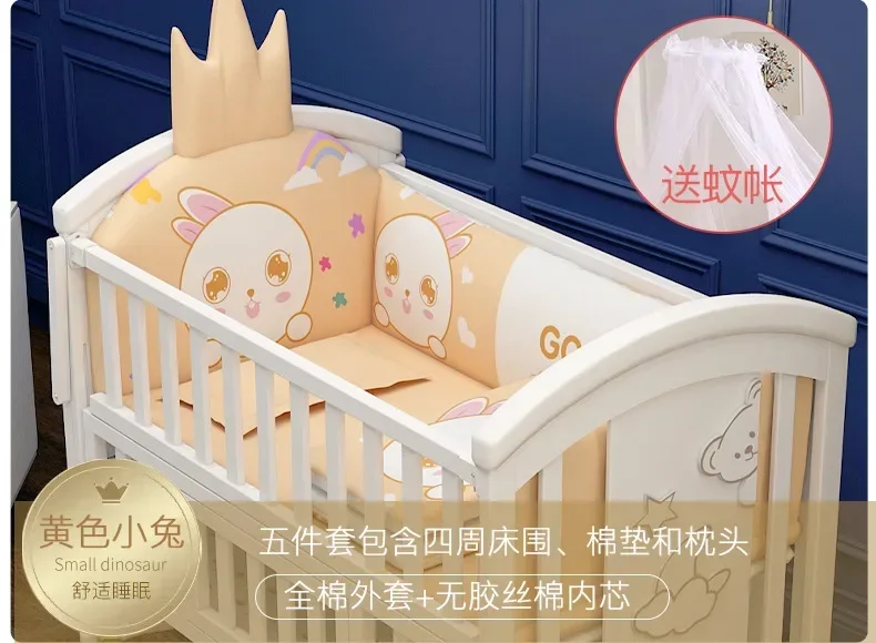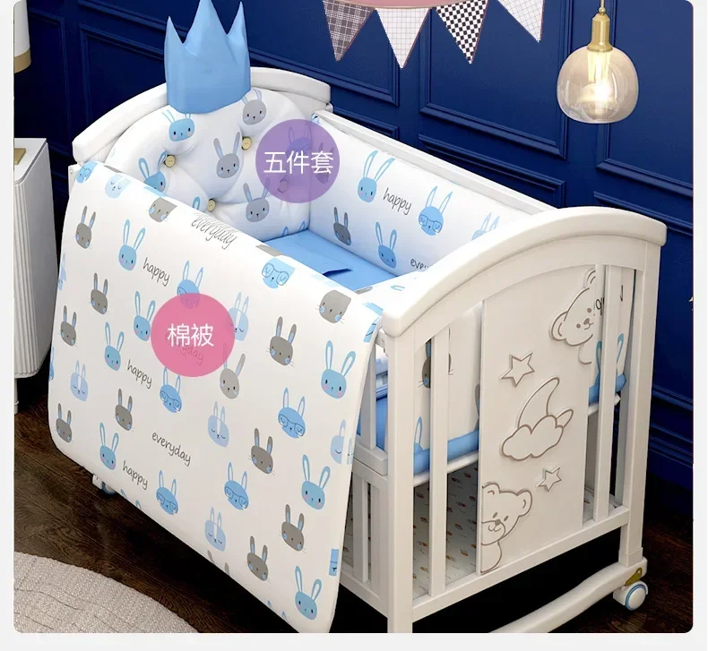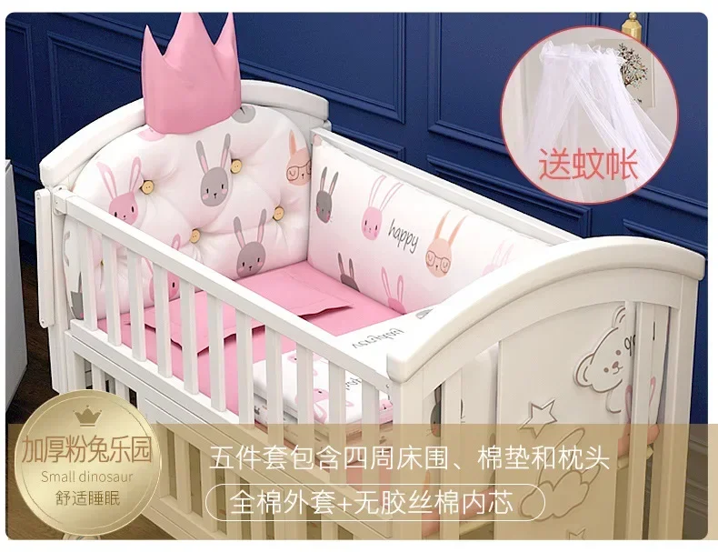 سرير أطفال من الخشب الصلب قابل للإزالة ، مهد متعدد الوظائف لحديثي الولادة ، سرير ملكة بربط للأطفال ، أبيض ، بي بي ، أوربي