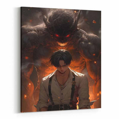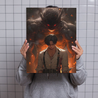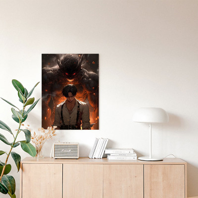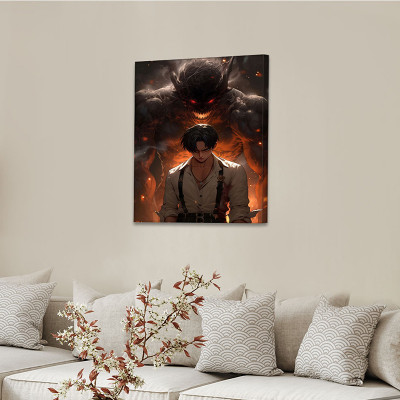 لوحة كانفاس على إطار خشبي بتصميم ليفاي أنمي هجوم العمالقة