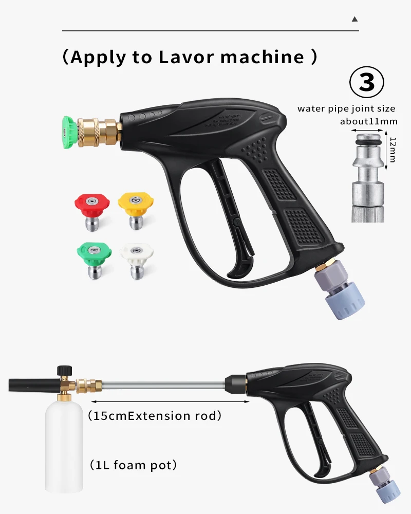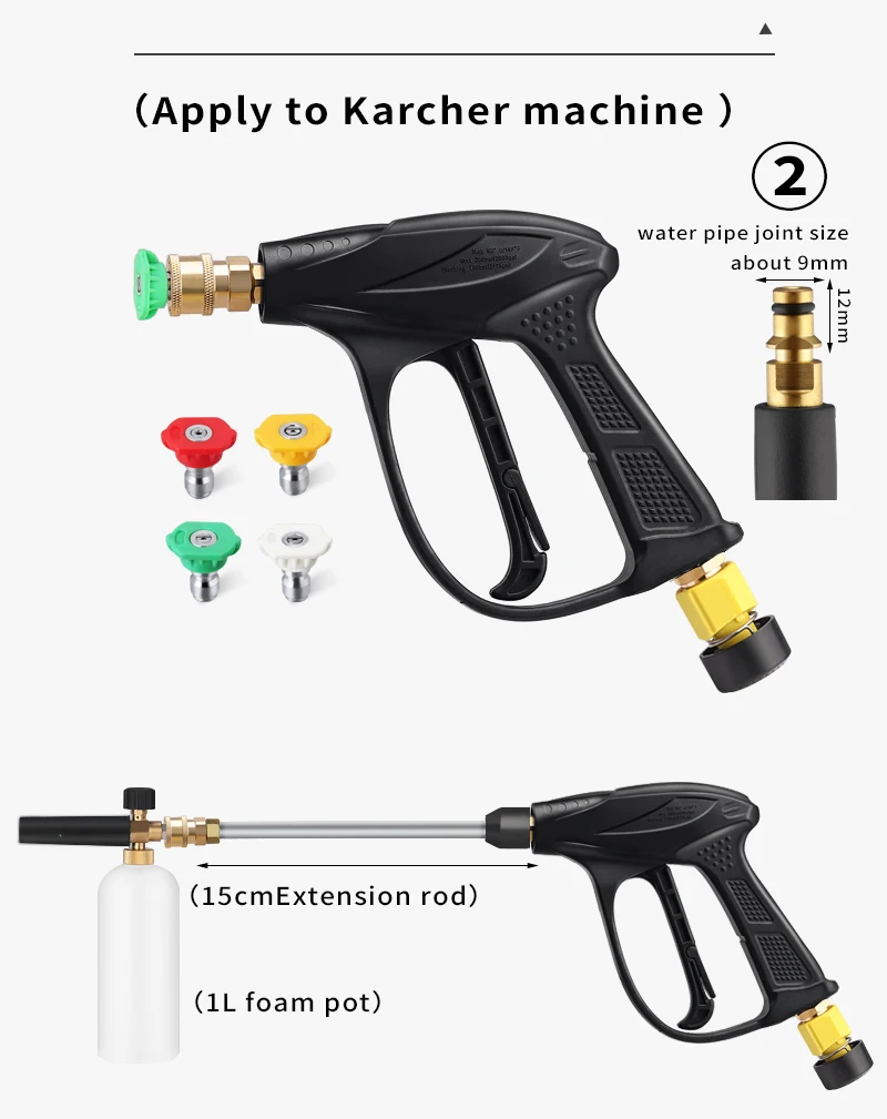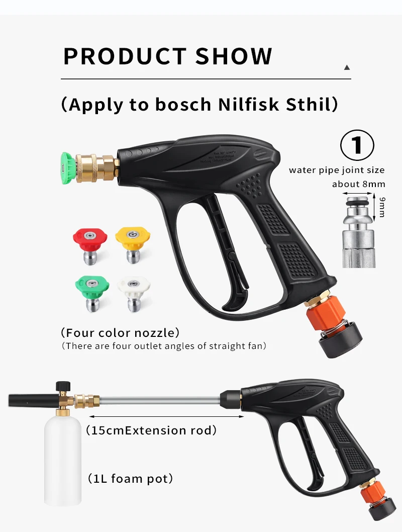 · استخدام متعدد: سيارة ، غسيل دراجات نارية ، غسيل نوافذ ، ممرات ، أسقف ، غسيل جانبي وما إلى ذلك. مثالية للاستخدام المتحمس أو الاحترافي. لا يصلح خرطوم الحديقة.