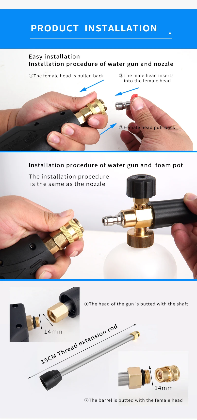 · 4فوهة متعددة الزوايا تربط مسدس الغسيل مع اتصال سريع من النحاس الأصفر تجعل أعمال التنظيف أكثر نظافة وأسرع.