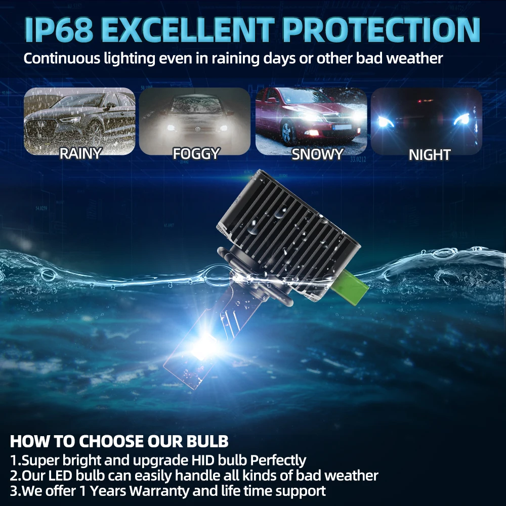 • سطوع عالي:مع سطوع 400000 لومن ، توفر هذه المصابيح LED رؤية ممتازة على الطريق ، مما يضمن تجربة قيادة أكثر أمانًا.