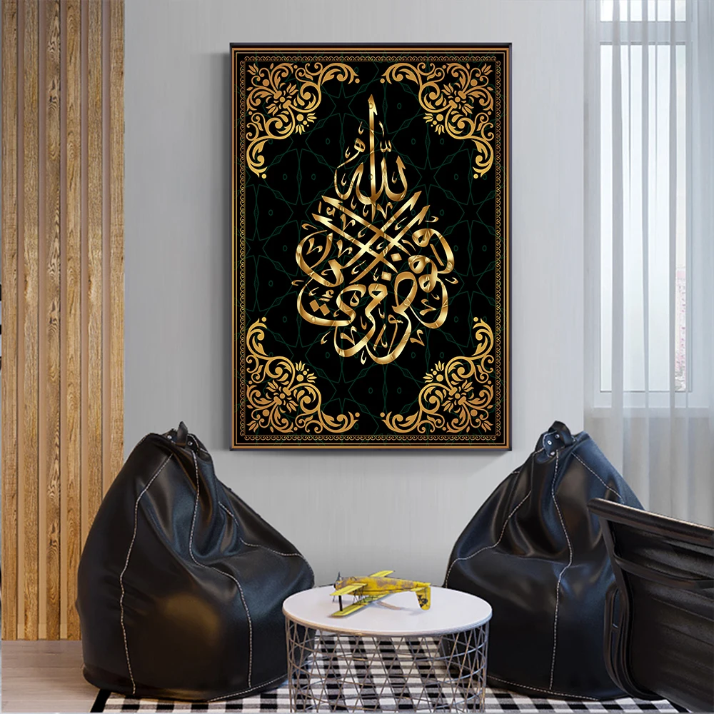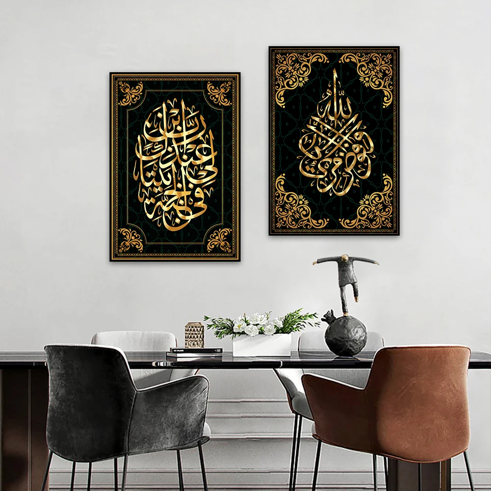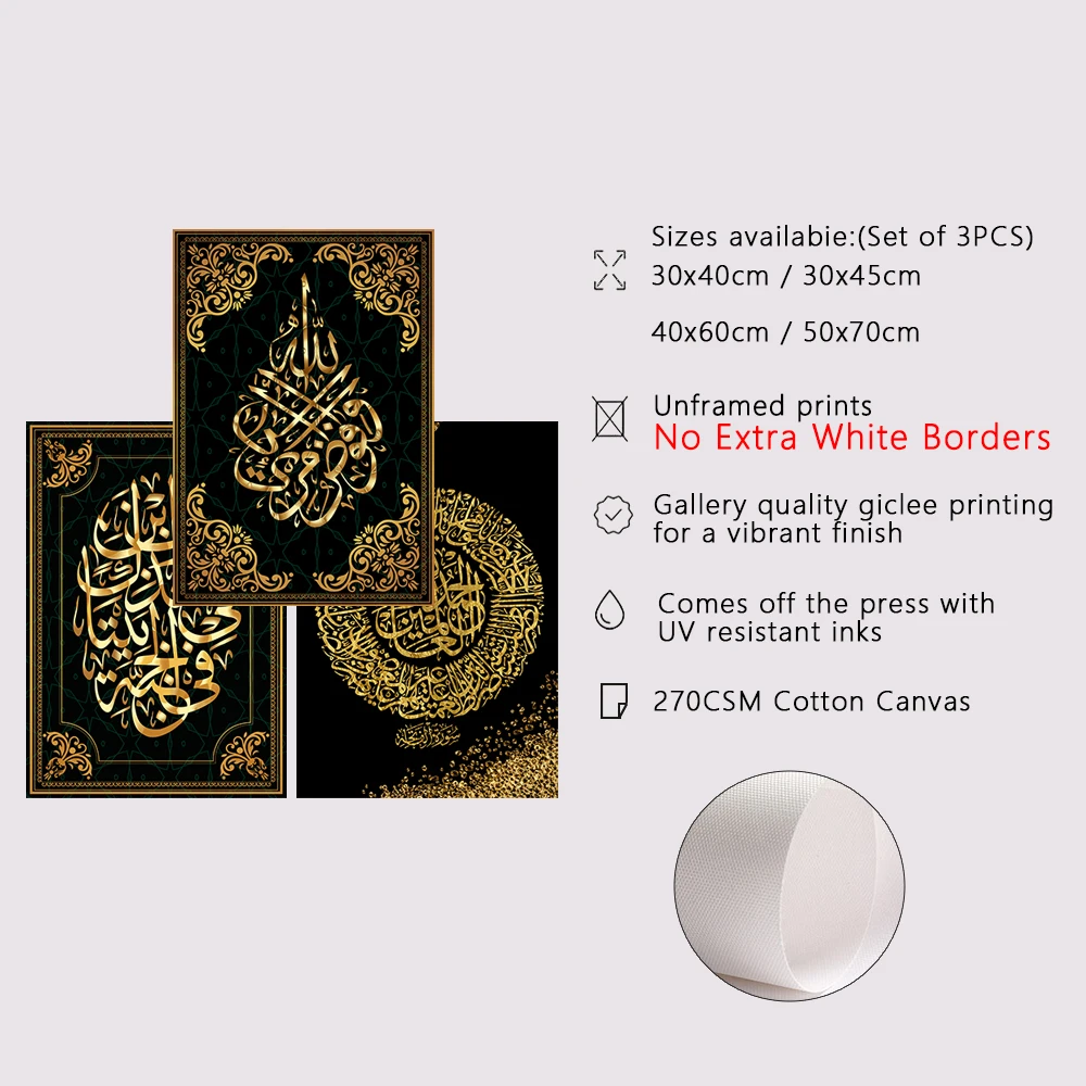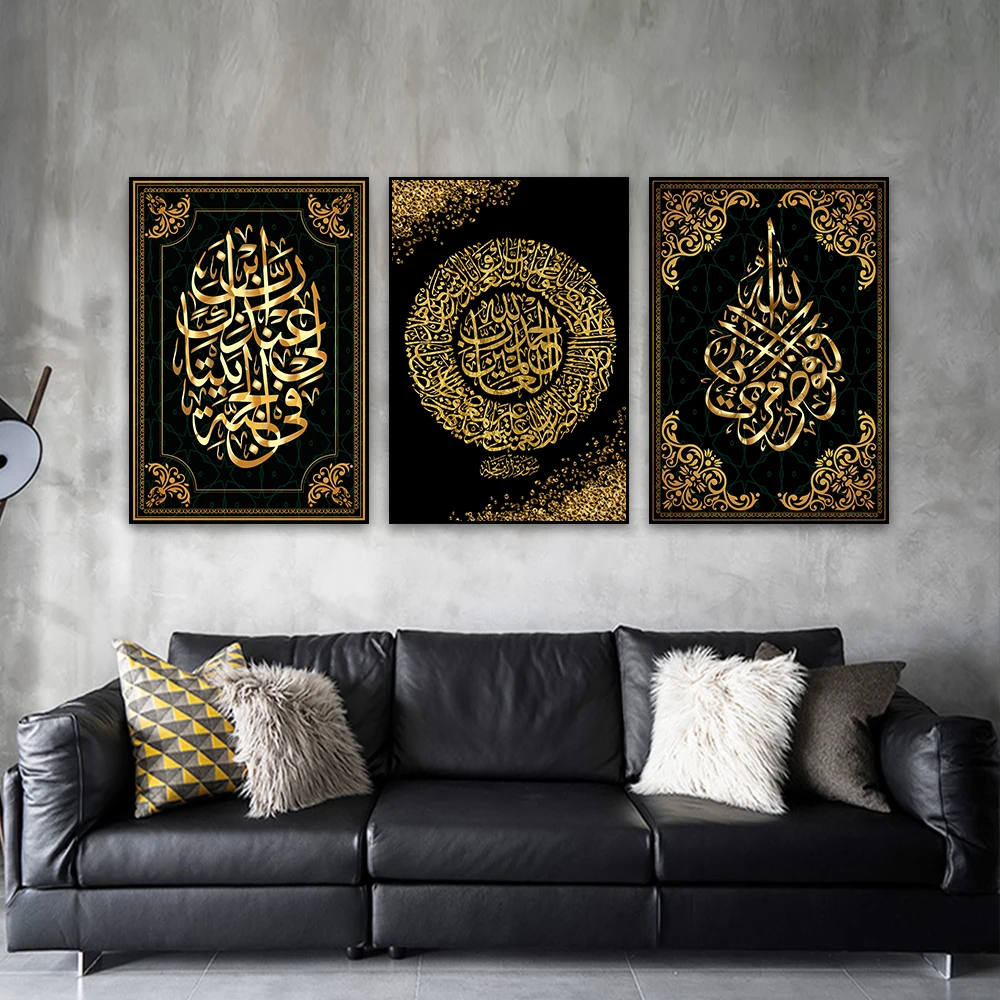 فرملس الأسود الخط الإسلامي جدار الفن ملصق ، فريد قماش اللوحة ، طباعة هدايا للمسلمين ، جدار الفن الديكور ، 3 قطعة