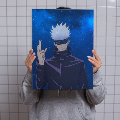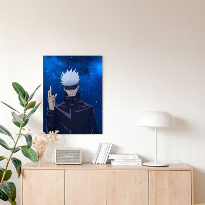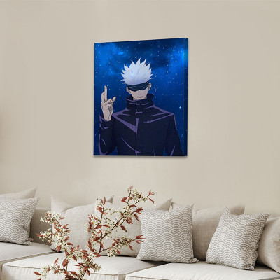 لوحة كانفاس على إطار خشبي بتصميم غوجو أنمي جوجوتسو كايسن