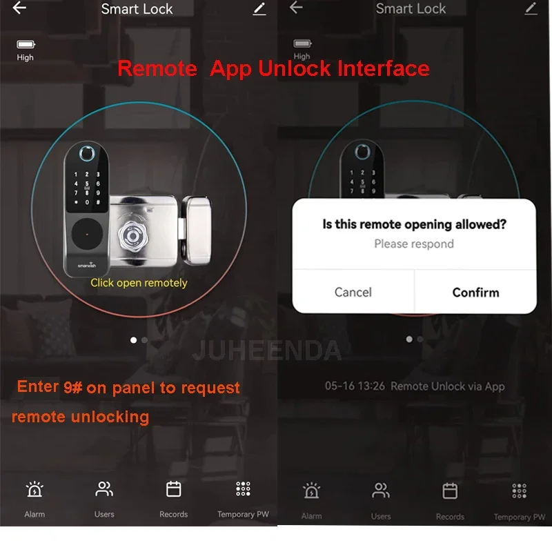 1. اضغط على 9 # على لوحة القفل لطلب فتح ، وفتح عن بعد عن طريق التطبيق الهاتف