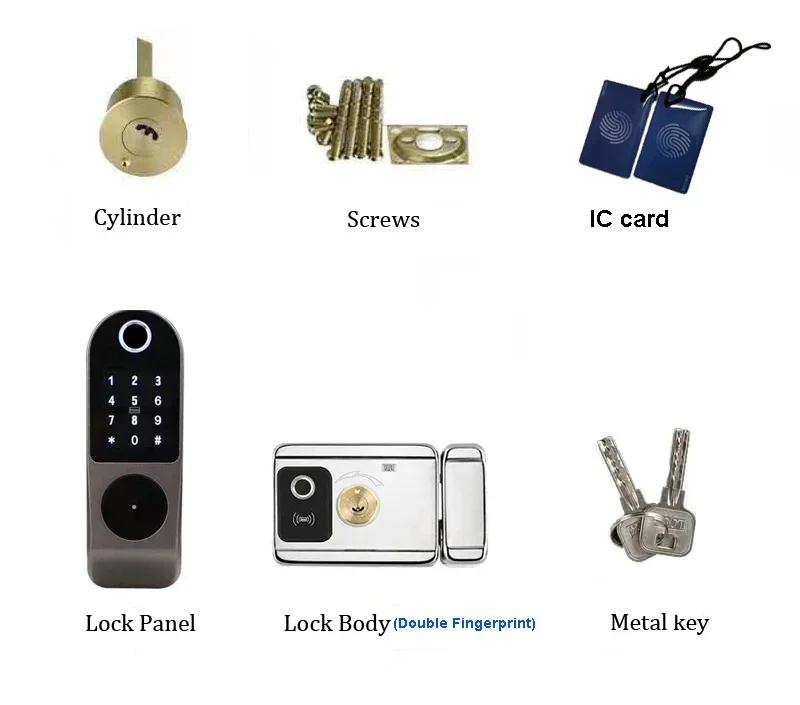 1x الجبهة قفل panel1x الخلفي قفل panel1 x قفل mortise2 x تتفاعل cards2 x الميكانيكية keys1 x المستخدم manual1 x قطع template1 x مسامير أطقم