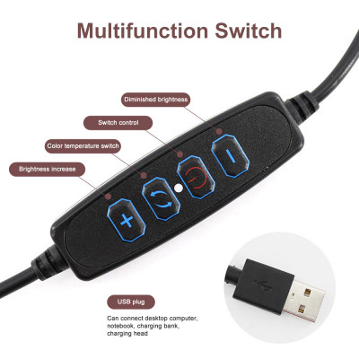 قابس USB يعمل بالطاقة: يمكن توصيل طاقة الإضاءة الحلقية بالكمبيوتر ، والطاقة المتنقلة وما إلى ذلك.
