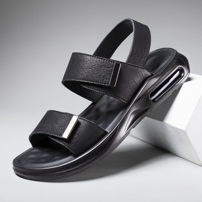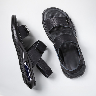 صنادل مسطحة من الجلد بمقدمة مفتوحة للرجال ، أحذية شاطئ ناعمة مريحة كاجوال ، حذاء رجالي ، صيفي