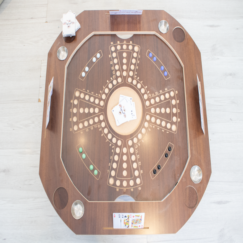 1-مساحة اللعب منخفضة لكي لا يسقط الورق وينكشف اللعب مما يسهل التوزيع