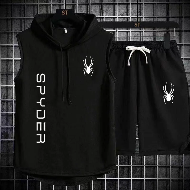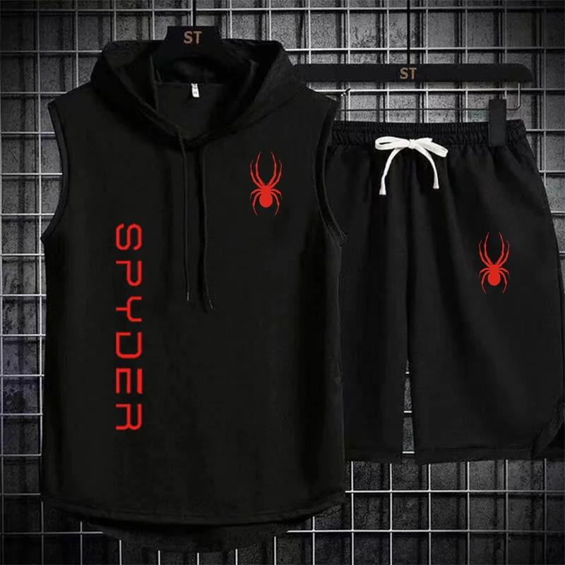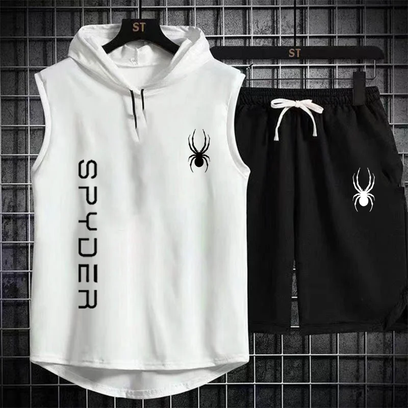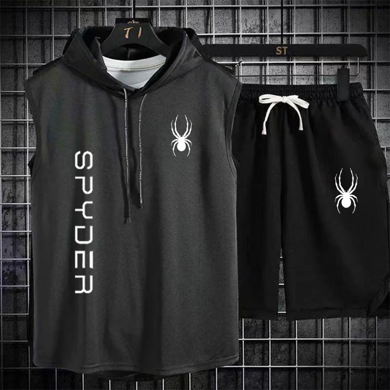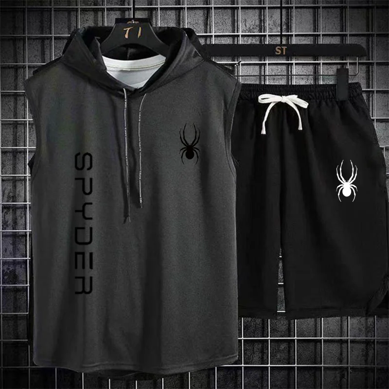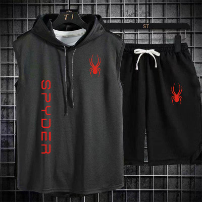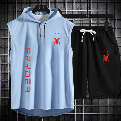 بدلة رياضية للركض للرجال ، ملابس رياضية ، تي شيرت ، شورت ، ملابس لياقة بدنية ، تمرين ، صيف ، علامة تجارية ، قطعتان