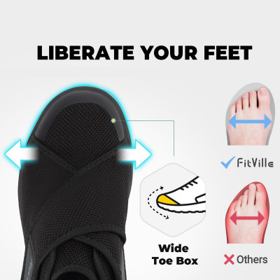2. مصممة لأحذية القدم المنتفخة-FitVille السكري تتميز بأصابع عريضة وواسعة للغاية لتوفير أقصى قدر من الراحة للأشخاص الذين يعانون من أقدام واسعة أو منتفخة.