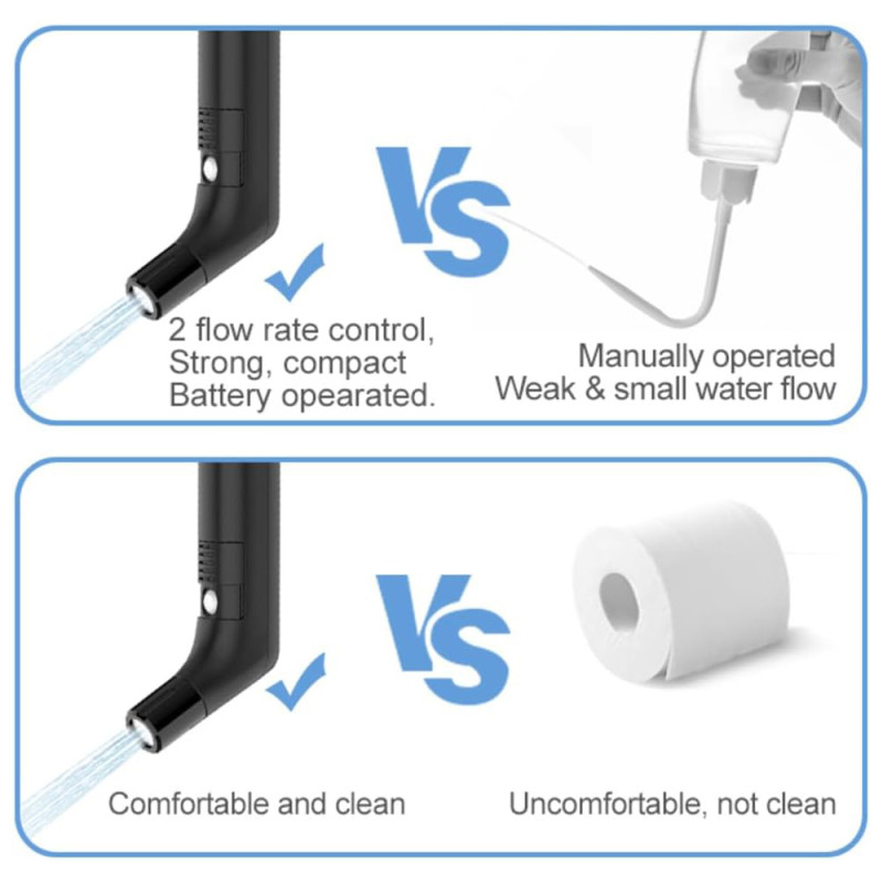 تشغيل بلمسة واحدة وأكثر صحة: سرعتان للتحكم في معدل التدفق يوفر الشطاف المحمول تيارًا لطيفًا ومريحًا، كما أن شطف الماء طريقة أنظف وأكثر صحة من المناشف الورقية بعد استخدام المرحاض.