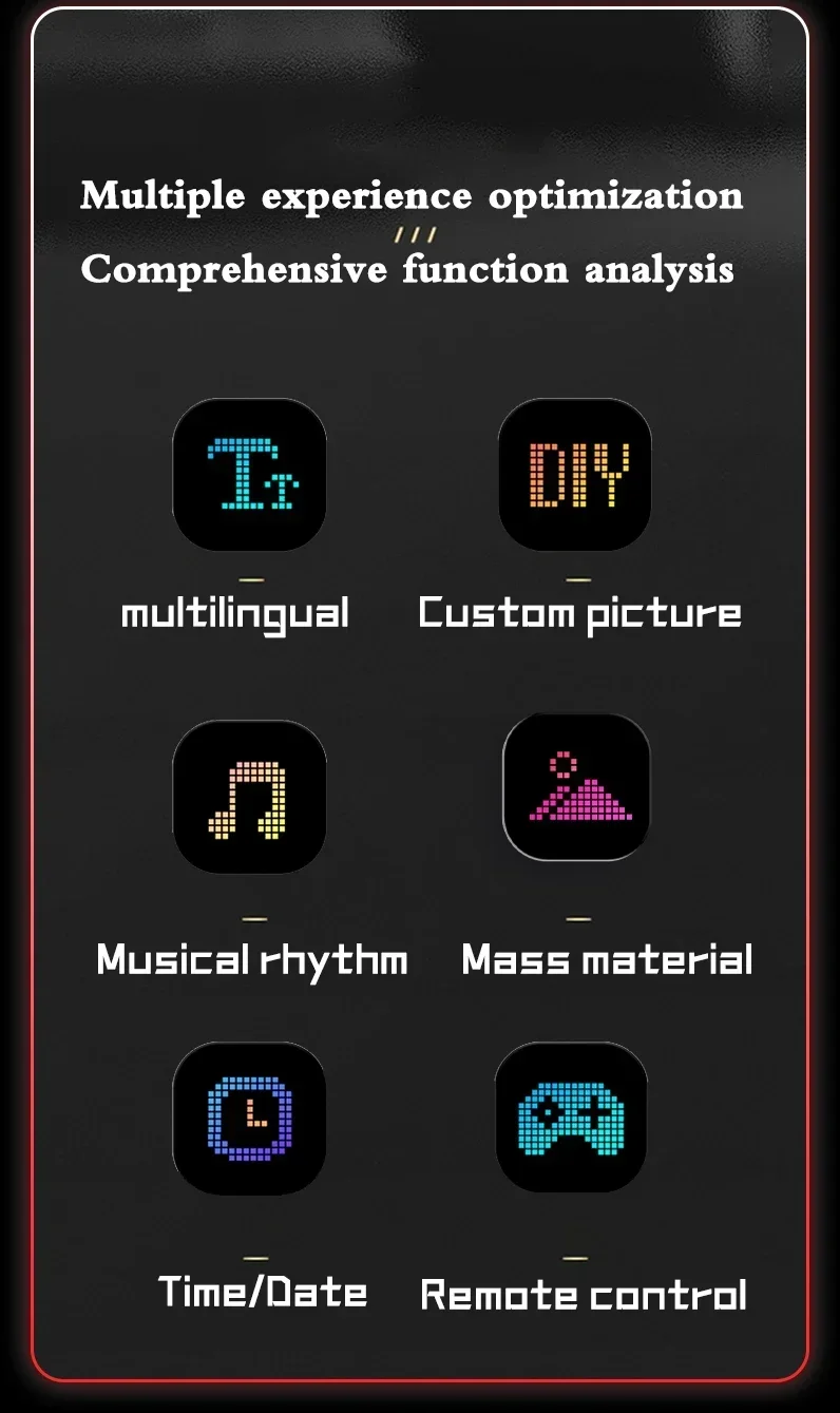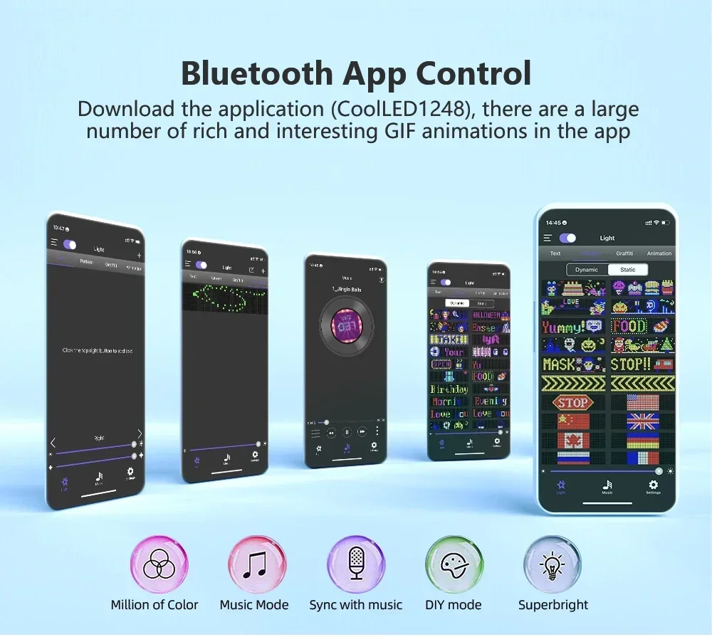 【 التحكم في التطبيق الذكي 】قم بتوصيل مصفوفة LED من خلال التطبيق ، يمكنك تصميم النص والأنماط والرسوم المتحركة بنفسك وفقًا لاحتياجاتك ومشاهدك الخاصة ، ويمكنك أيضًا ضبط السطوع والسرعة لتلبية احتياجاتك بشكل مثالي.