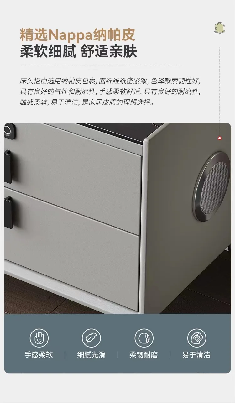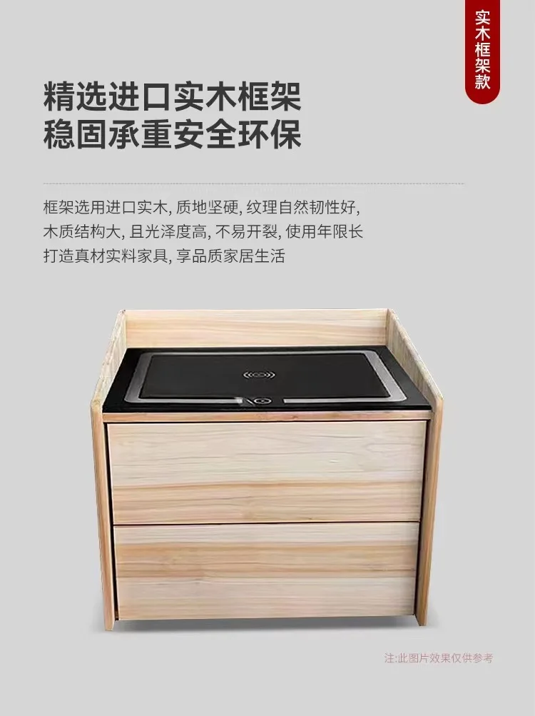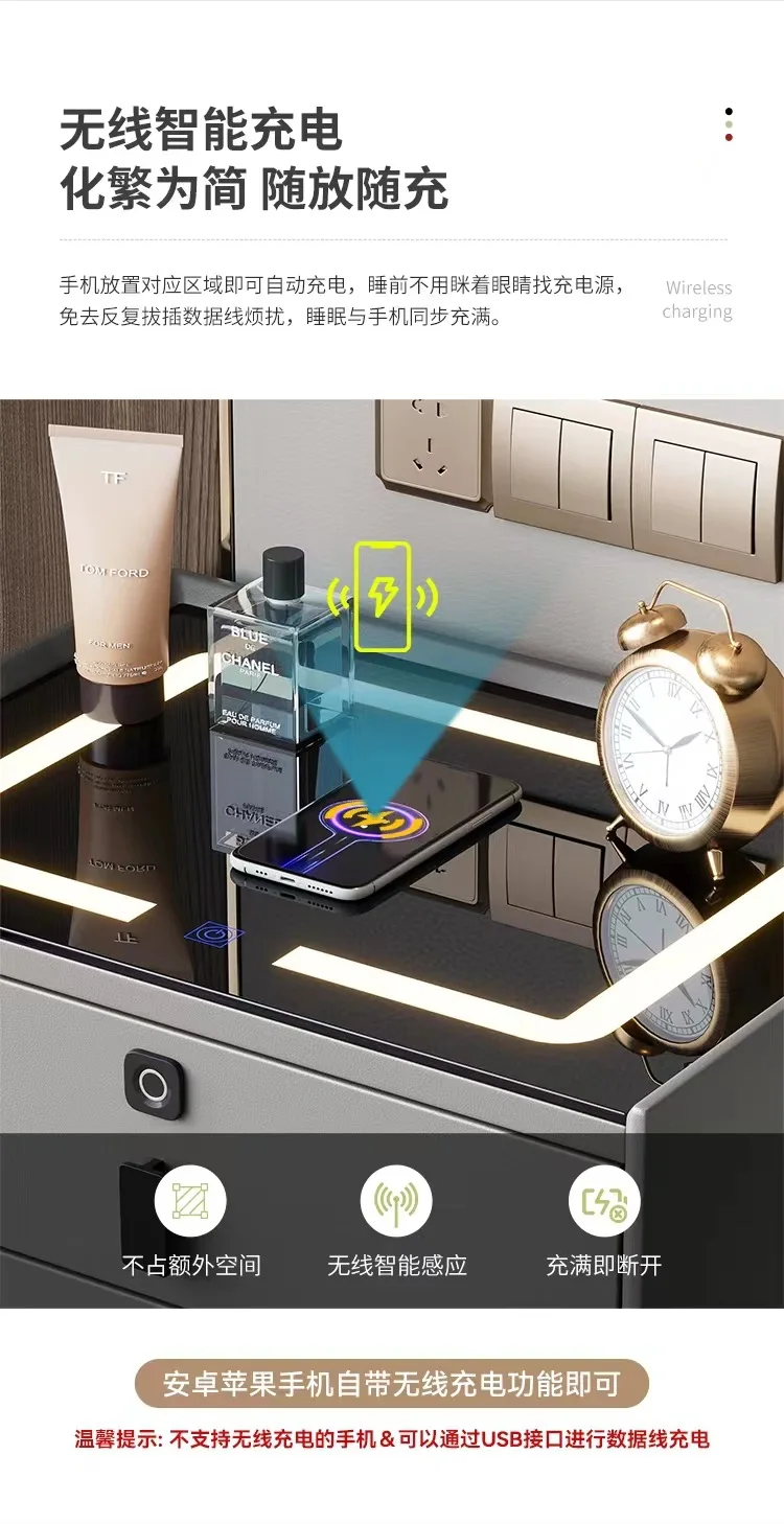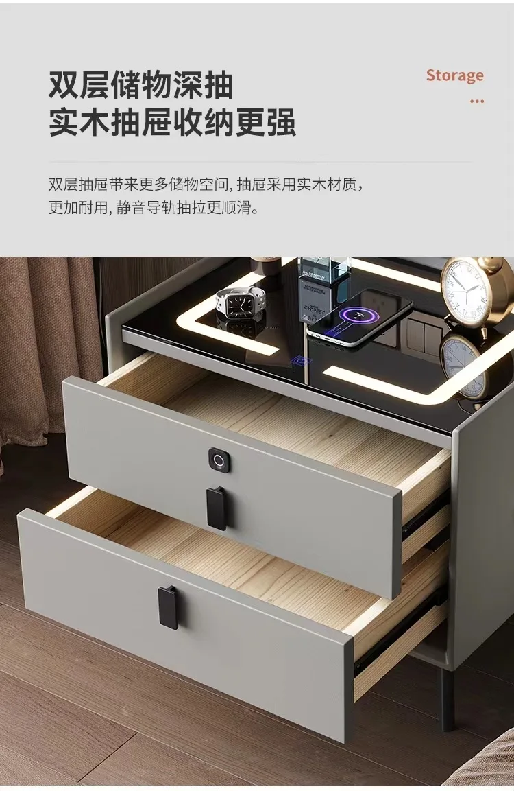 خزانة بجانب السرير الذكية المصنوعة من الخشب الصلب، خزانة بجانب السرير الفاخرة، خزانة تخزين شحن لاسلكية بسيطة وحديثة