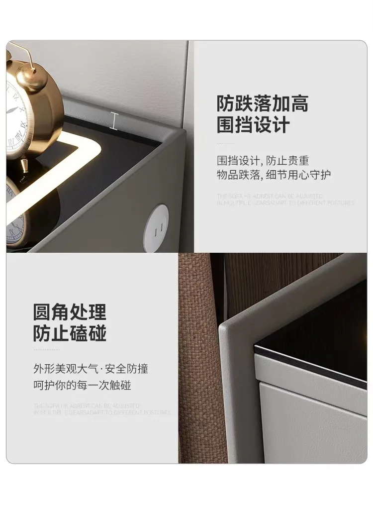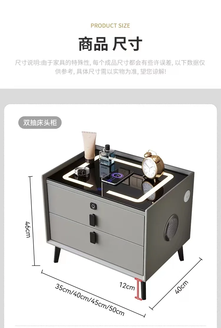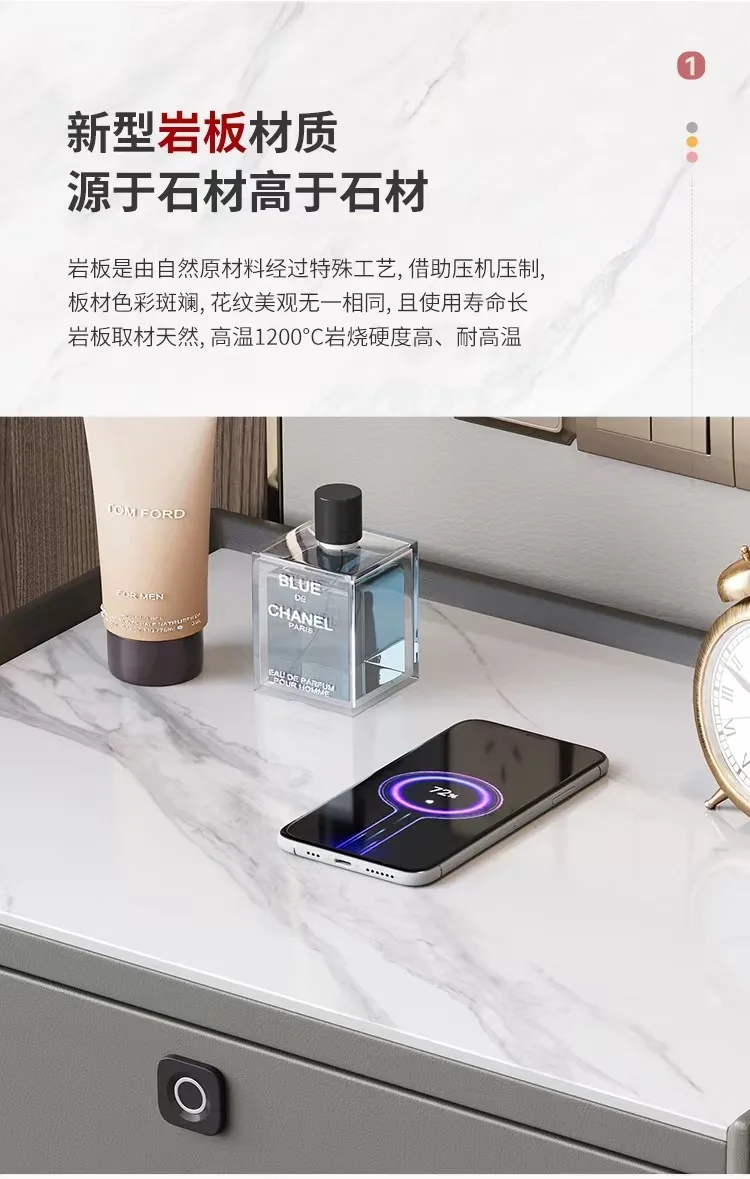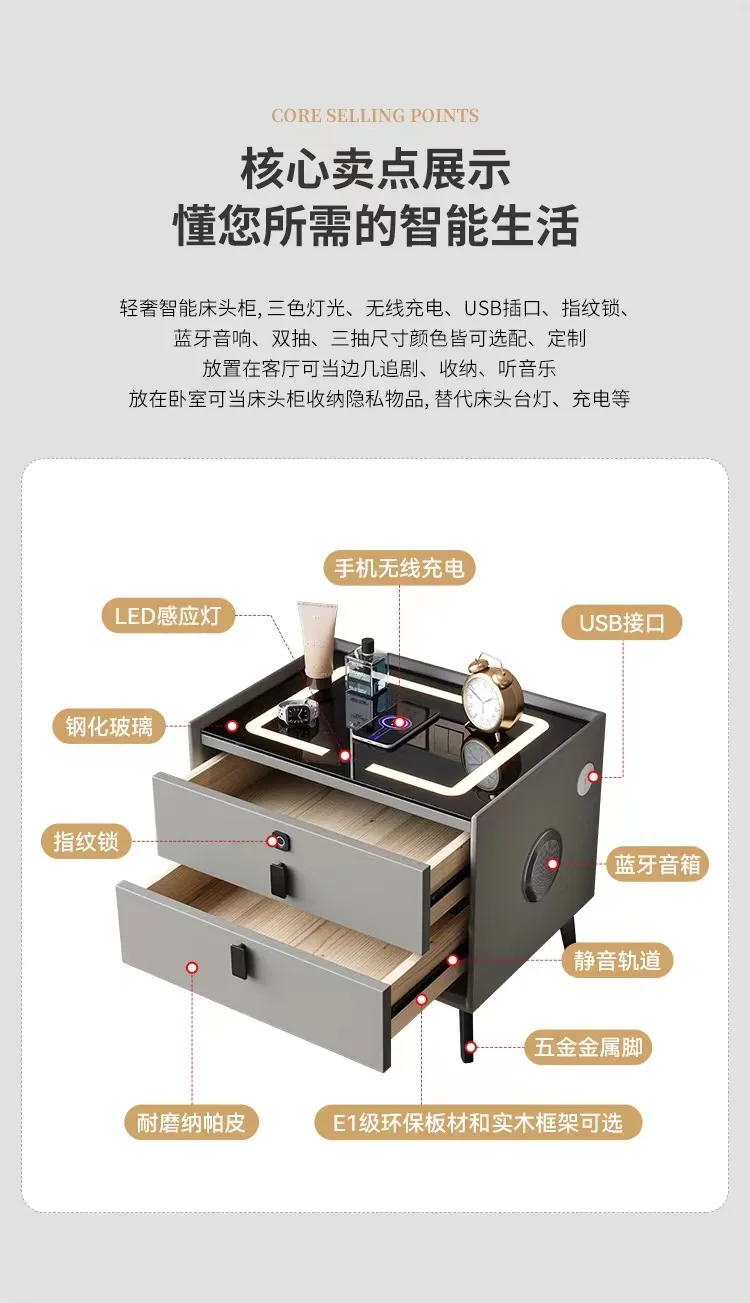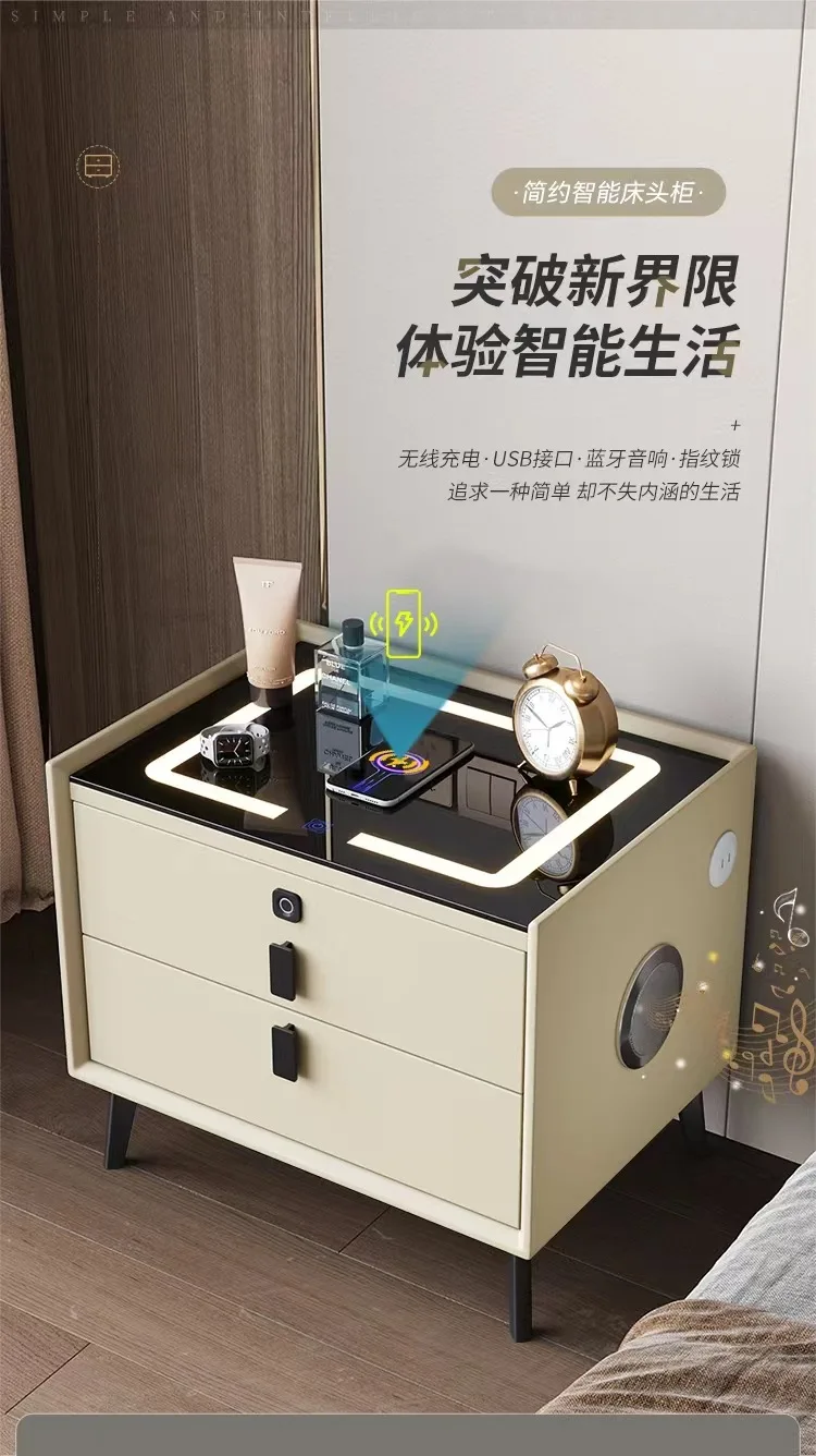 خزانة بجانب السرير الذكية المصنوعة من الخشب الصلب، خزانة بجانب السرير الفاخرة، خزانة تخزين شحن لاسلكية بسيطة وحديثة