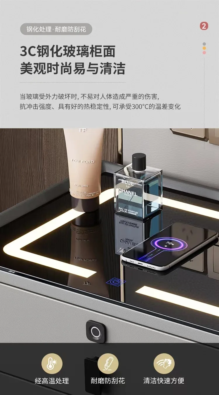 ضوء ثلاثي الألوان + شحن لاسلكي + USB + مكبر صوت بلوتوث + قفل بصمة الإصبع