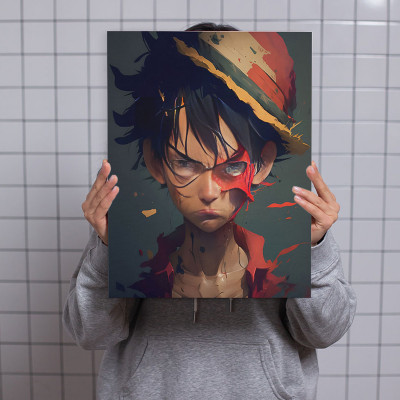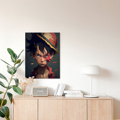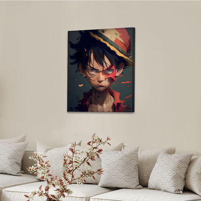 لوحة كانفاس على إطار خشبي بتصميم لوفي أنمي وان بيس